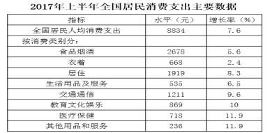 118.關(guān)于2017年上半年全國(guó)居民收入和消費(fèi)支出主要數(shù)據(jù)情況,下列說法正確的是( )