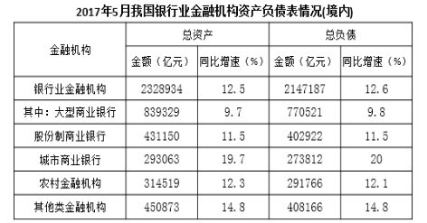 107.在2017年5月我國(guó)銀行業(yè)金融機(jī)構(gòu)資產(chǎn)負(fù)債表中,下列哪一項(xiàng)的總資產(chǎn)同比增長(zhǎng)額最高?( )