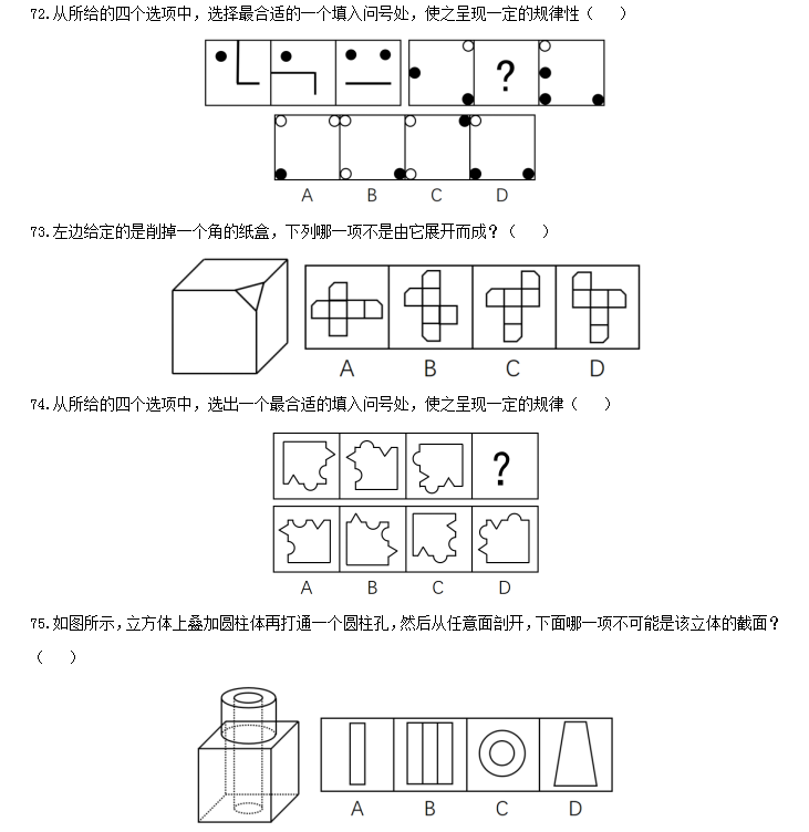 三、言語理解,共40題,本部分包括表達(dá)與理解兩方面的內(nèi)容,請根據(jù)題目要求選出答案。