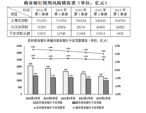 A、城市商業(yè)銀行不良貸款率高于農(nóng)村商業(yè)銀行 B、農(nóng)村商業(yè)銀行貸款總額高于城市商業(yè)銀行
