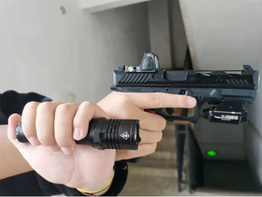 低光環(huán)境下最重要的裝備就是照明設(shè)備。這里所指照明設(shè)備包括戰(zhàn)術(shù)手電和槍燈兩種。在講手電和槍燈之前,我們需要在思維中建立一個原則,這個原則就是“1等于0,2等于1”。這個原則就是指我們認(rèn)為使用照明裝備時,攜帶一個照明裝備等于沒有攜帶照明裝備,攜帶兩個照明裝備才認(rèn)為是裝備了一個照明裝備。這是一個以底線思維為基礎(chǔ)的戰(zhàn)術(shù)思維和原則,這里筆者建議各位同志在處理警情的時候攜帶兩支以上照明設(shè)備,這里的考慮是在主要使用的照明設(shè)備出現(xiàn)問題或者電量不足時可以有備用的設(shè)備進行使用,如果只帶一個照明設(shè)備,一旦出現(xiàn)問題無法使用,那和沒有攜帶照明裝備有什么區(qū)別?所以,參與低光環(huán)境下執(zhí)法活動、巡邏防控的警務(wù)人員,身上都應(yīng)該帶有起碼兩個以上的照明設(shè)備,這里指戰(zhàn)術(shù)手電、槍燈、醫(yī)療手電、頭燈等,這樣能在主要照明設(shè)備故障時保證有繼續(xù)照明的能力。