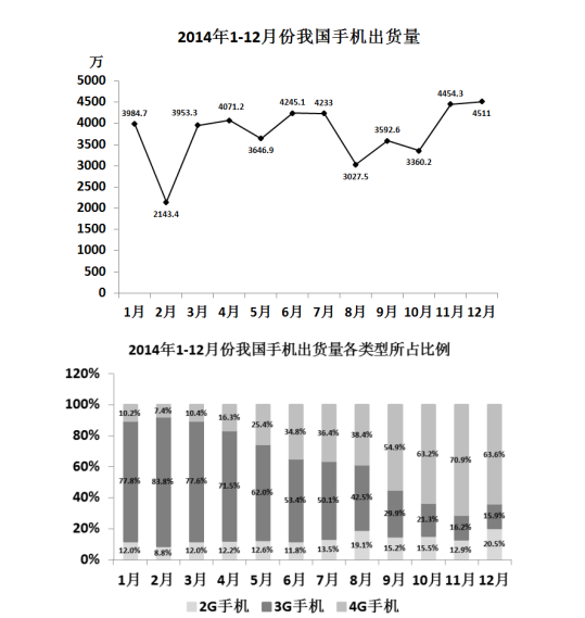 C.2014年7月,我國4G手機(jī)出貨量首次超過了1500萬