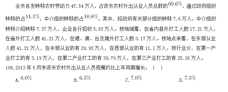 110.關于2013年5月末該市農(nóng)村外出從業(yè)人員,能從上述資料中推出:( )