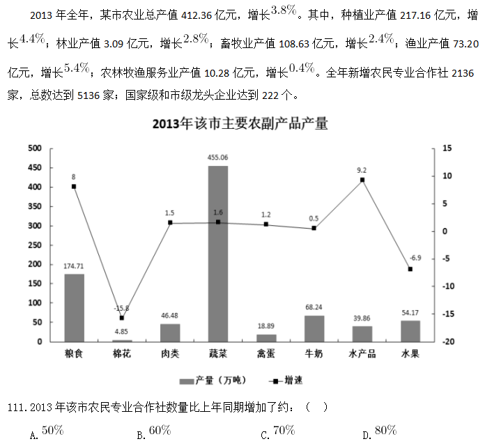 115.關于該市2013年農(nóng)業(yè)生產(chǎn),能夠從上述材料當中推出的是:( )